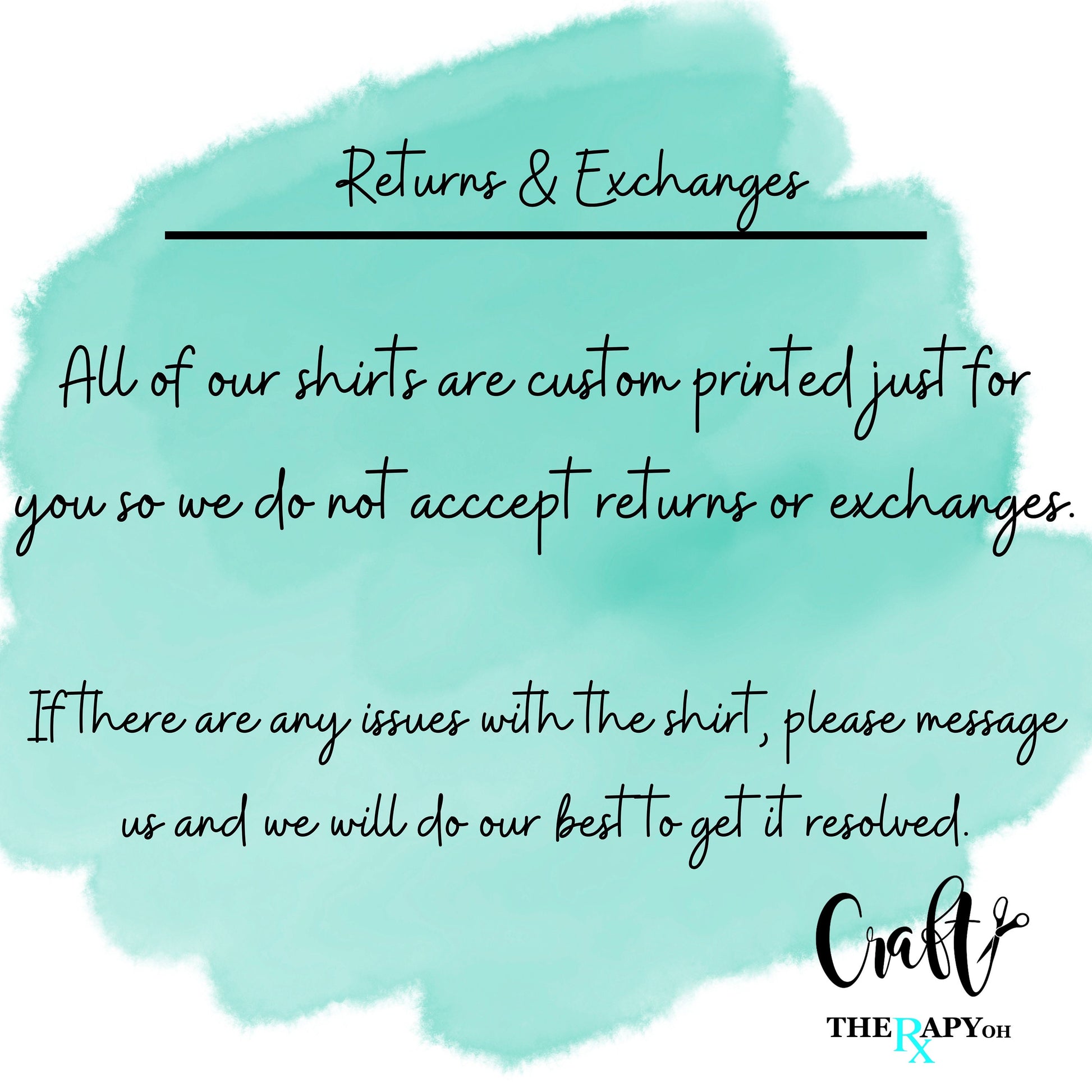 -All of our shirts are custom printed just for you so we do not except returns or exchanges due to size